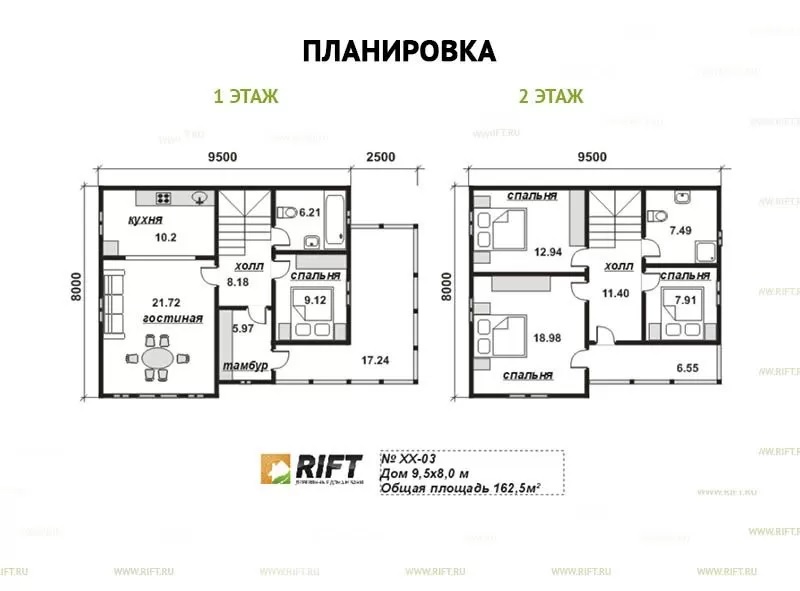 Высота 2-ого этажа | 2400 мм. | |