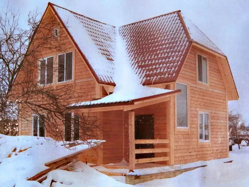 Для внешней отделки используют влагостойкую фанеру, ОСБ-плиты, сайдинг или деревянную вагонку. Внутри дом обшивают гипсокартоном или вагонкой, создавая уютный интерьер. Кровля покрывается металлочерепицей, профнастилом или мягкой кровлей.